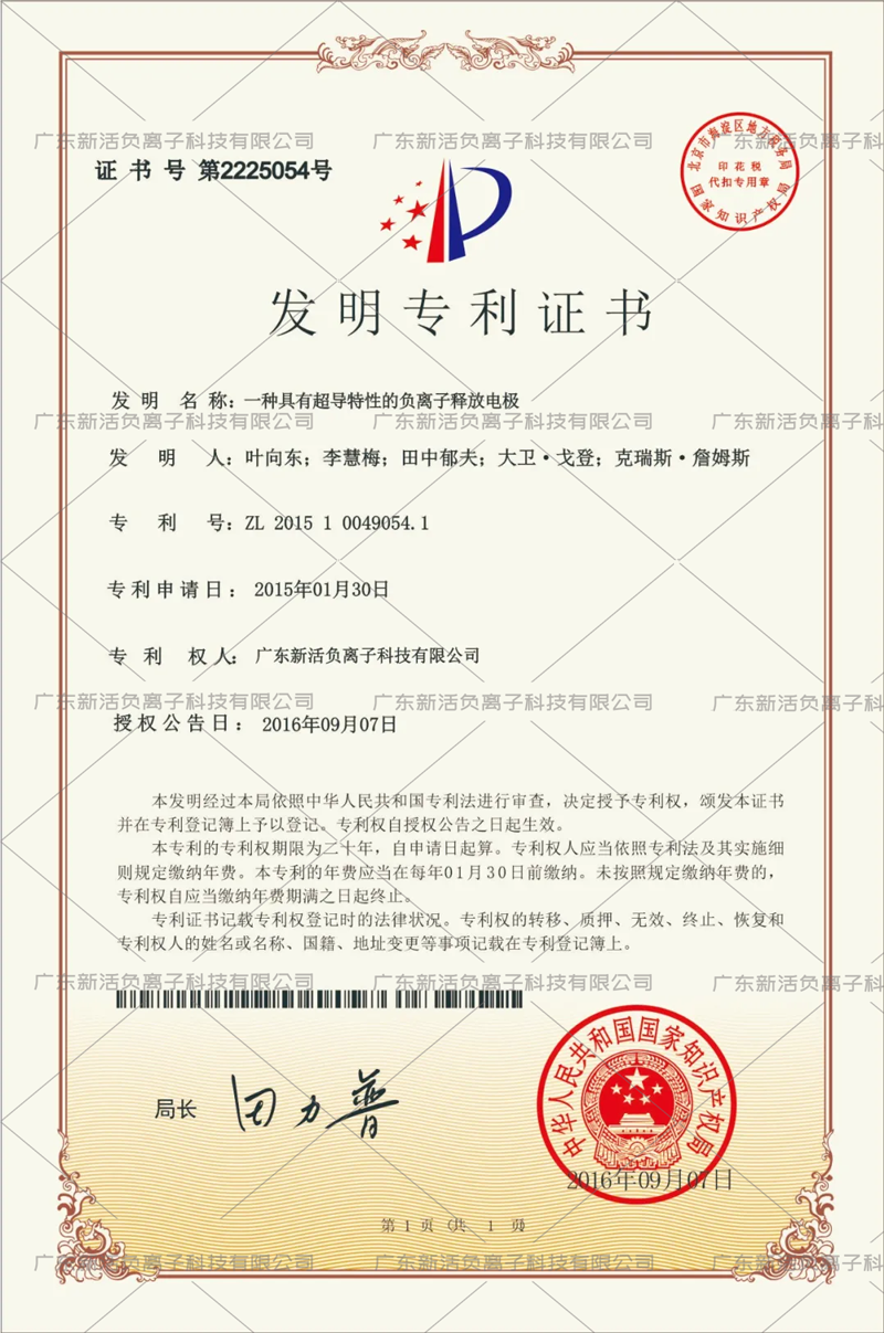 公司產品先后榮獲國家知識產權局專利授權100余項。旗下產品森肽基負氧離子生產機、森肽基空氣負離子空氣凈化器、班泰克斯負離子空氣處理器(中外合作項目)先后通過中國科學院、中國疾病預防控制中心……